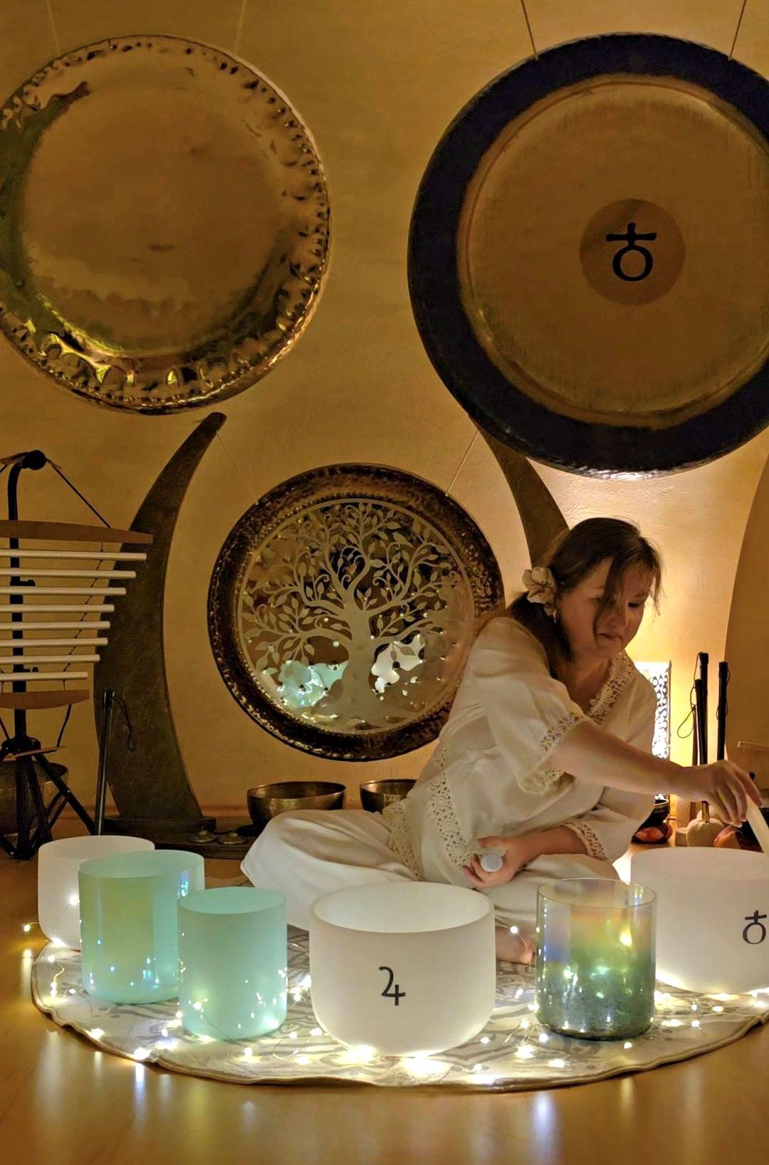 Dann wären da noch die Klänge zu erwähnen, die uns seit Menschengedenken unterschiedlich beeindrucken und beeinflussen. Für eine Atem- und Klangsession verwende ich die zarten, obertonreichen Kristallklangschalen. Du wirst in einem Bukett feinster Schwingungen baden und in eine Tiefenentspannung gelangen. Während dessen fließt der Atem frei und ruhig.