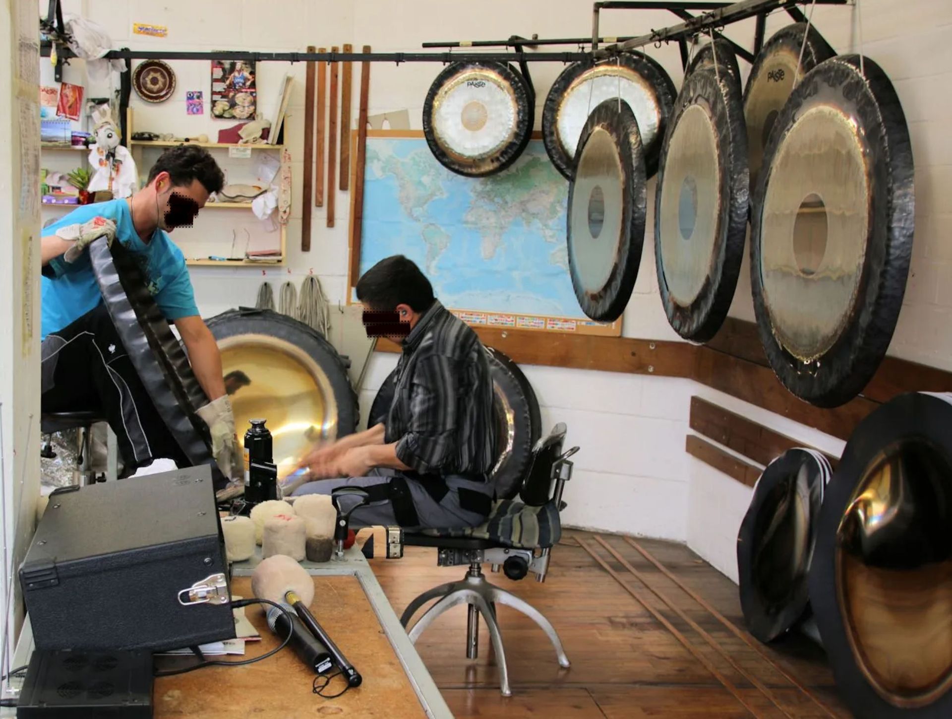 Jeder Gong erhält seine eigene „Handschrift“, seinen eigenen Klangcharakter und wird von nur einem Gongbauer von Anfang bis zum Ende nahezu alleine gefertigt.