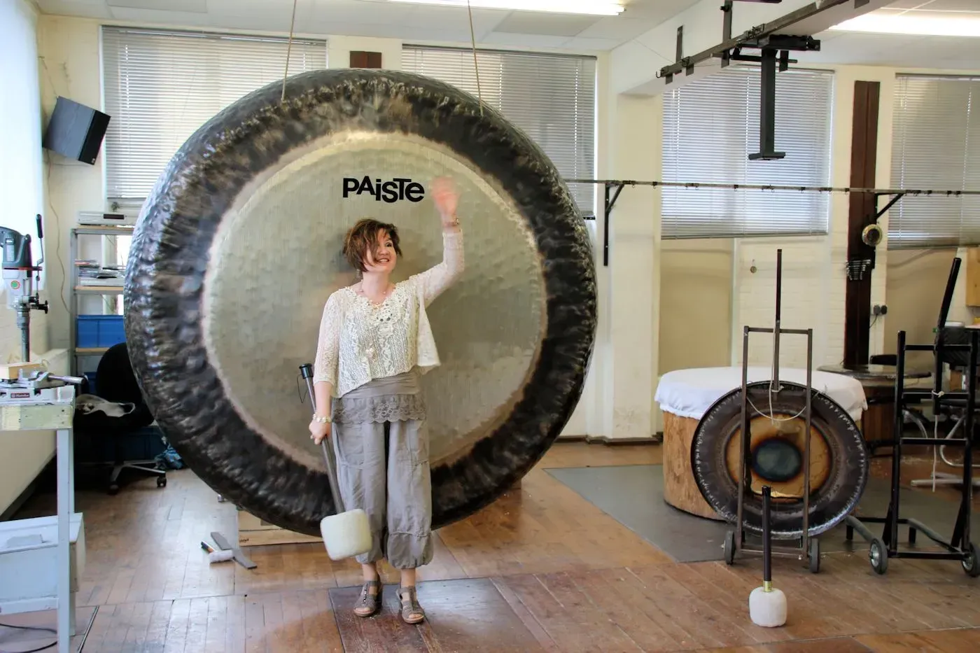 Als Gast in den heiligen Hallen des weltweit bekannten PAISTE-Werkes durfte ich mir meinen Earth Gong unter drei rein äußerlich baugleichen Gongs direkt vor Ort aussuchen und deren Klangproben genießen.