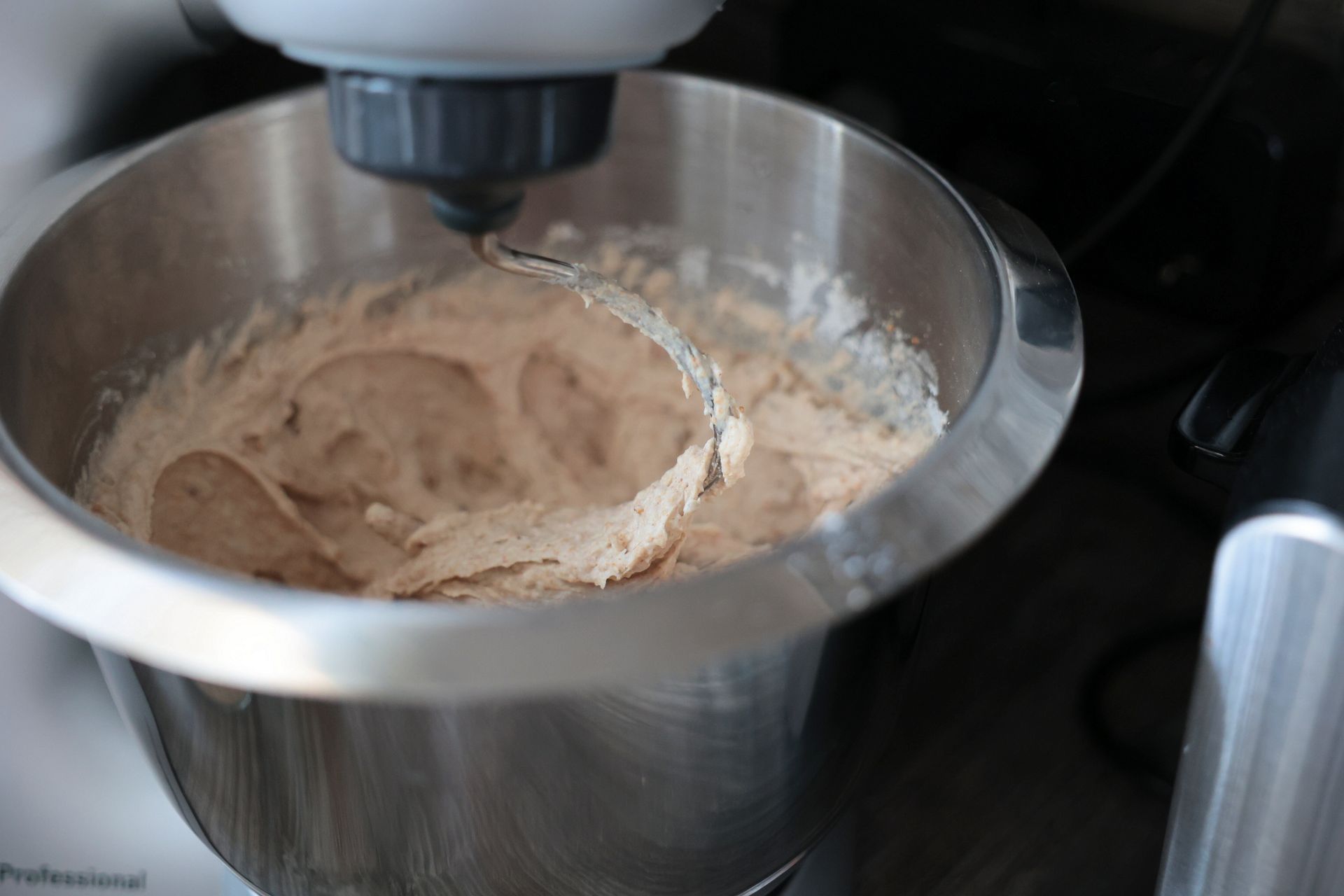 Alle Zutaten gut miteinander in der Küchenmaschine verkneten.